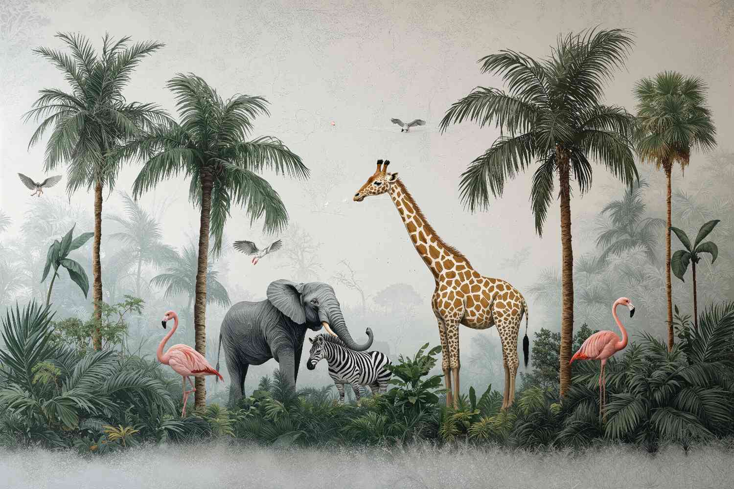 The mural’s smooth gradients and subtle shadings give each petal a velvety texture, presenting an illusion of depth that makes the flowers pop, as if they’re a soft breath away from reality. Giant tulips in soft pastels become truly a sight to behold. Available in two color options, smooth rose and gringe black - both options omplements the luxurious seemingly soft to the touch petals.