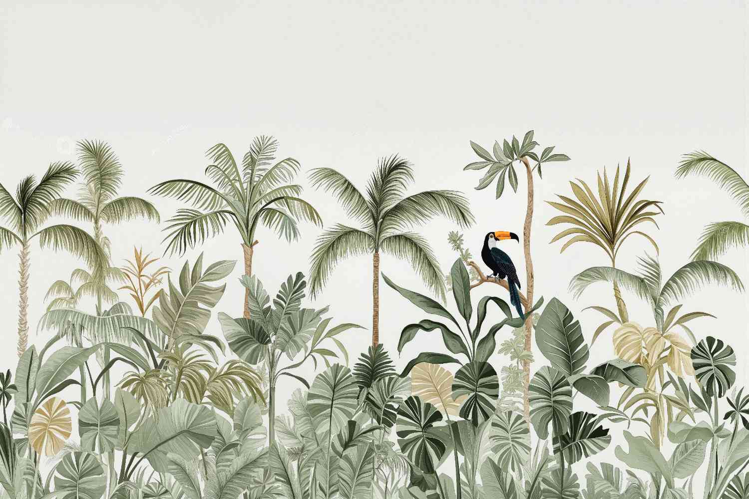 “Bamboo Whisper” evokes a sense of serene growth and gentle movement. This ultra-detailed mural reflects a watercolor art style, capturing the beauty of bamboo with subtle color variations and delicate brush strokes. The overlapping leaves and stems provide depth and texture, while the gentle hues convey a sense of eace.