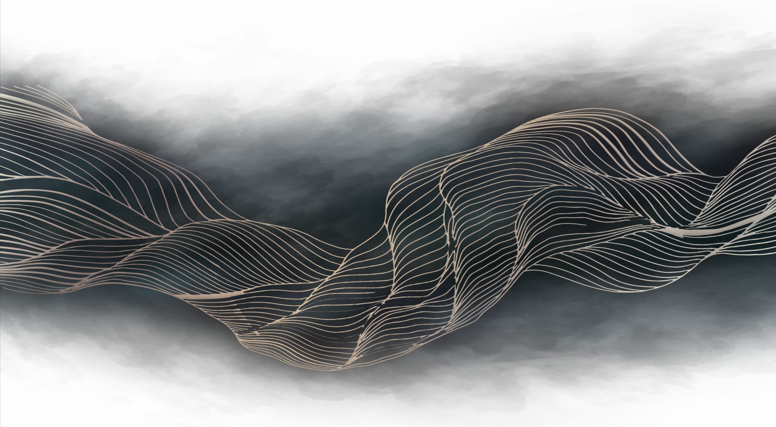 Flowing copper lines dance over moody gradients in timeless elegance
